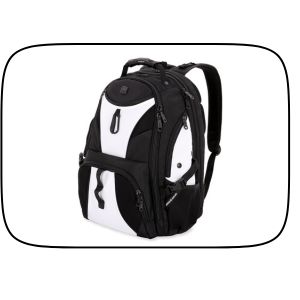SwissGear 1900 ScanSmart 17” Laptop Backpack White/Black – Reflective Tech Backpack with ScanSmart Compartment – Multiple Organizer Pockets & RFID Scan Blocking Technology